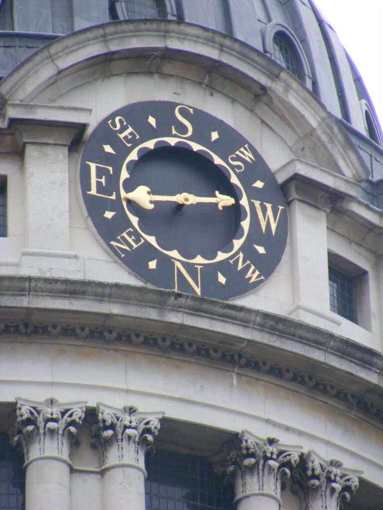 Der abgebildete Kompass befindet sich am Gebäude des Old Royal Naval College in Greenwich. Es ist eine bedeutende Barockanlage und gehört zum UNESCO-Weltkulturerbe