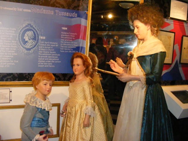 11-06-2010 Madame Tussoud (275) ← Vorheriges Nächstes → Die dargestellten Figuren zeigen Marie Tussaud selbst beim Modellieren sowie zwei Kinder in historischer Kleidung – vermutlich symbolisieren sie ihre Söhne Joseph und Francis