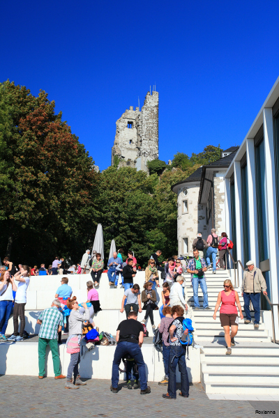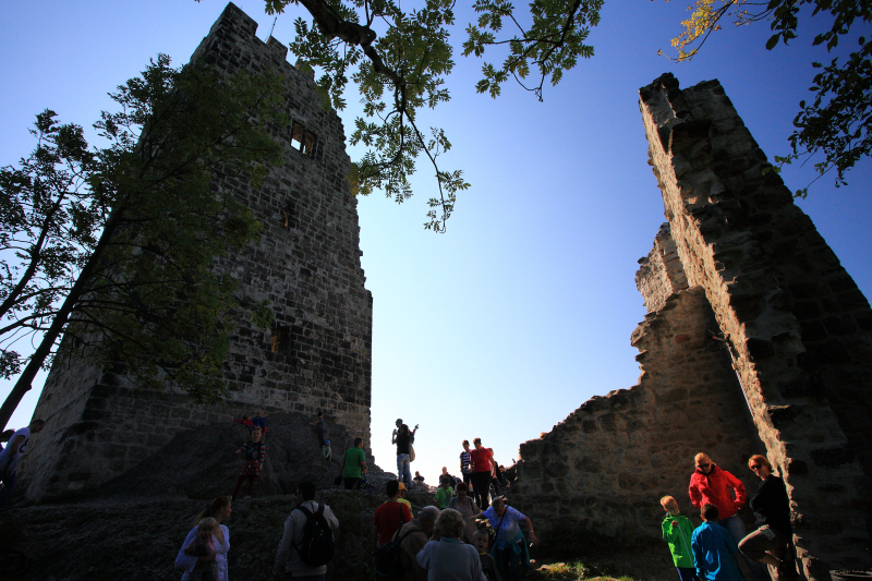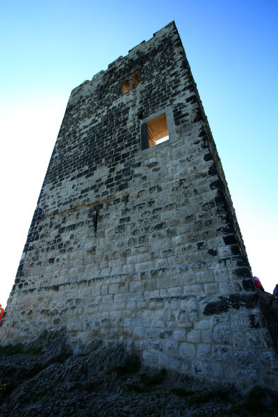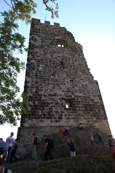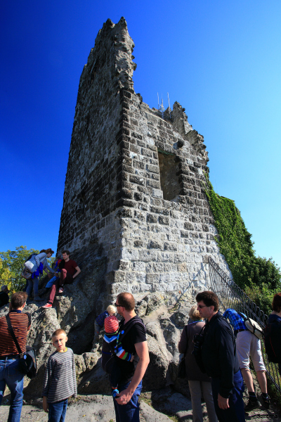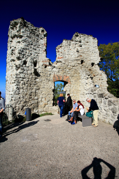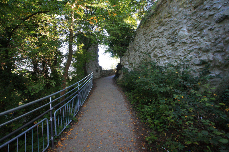 Um zur eigentlichen Burgruine zu gelangen, muss man das Plateau verlassen und dem asphaltierten, aber stetig ansteigenden Weg weiter nach oben folgen.