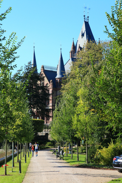 Märchenschloss-Optik: Erbaut zwischen 1882 und 1884, ist es kein mittelalterlicher Bau, sondern eine prächtige Villa im historistischen Stil (Neogotik und Neorenaissance).