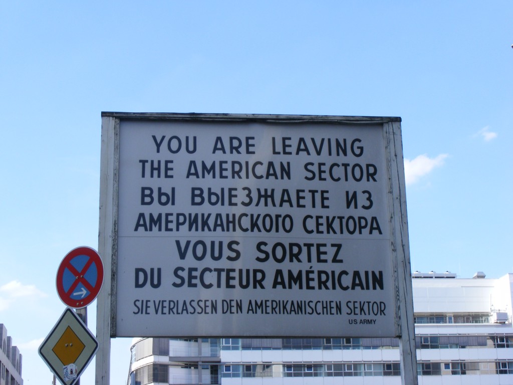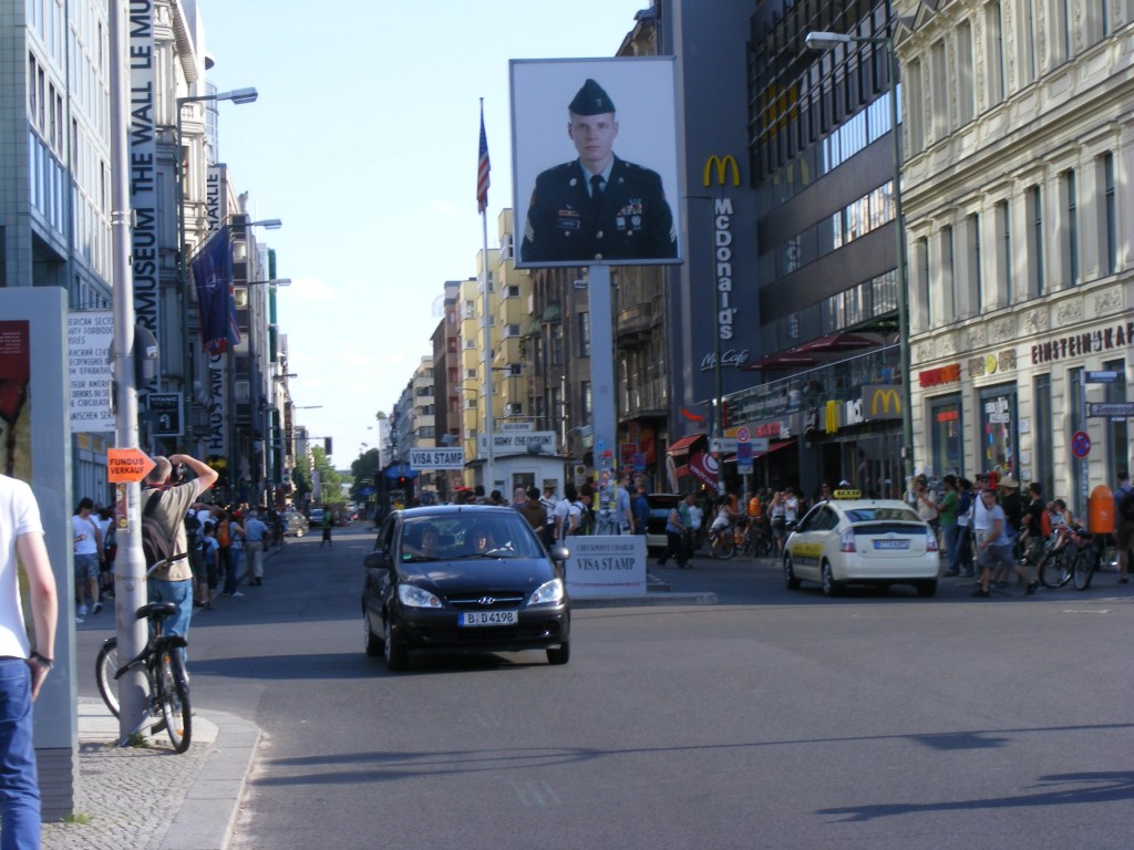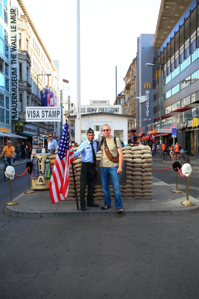 Der Bus endete am Checkpoint Charlie. Hier machten wir noch ein paar Fotos mit dem „amerikanischen Soldaten“ .
