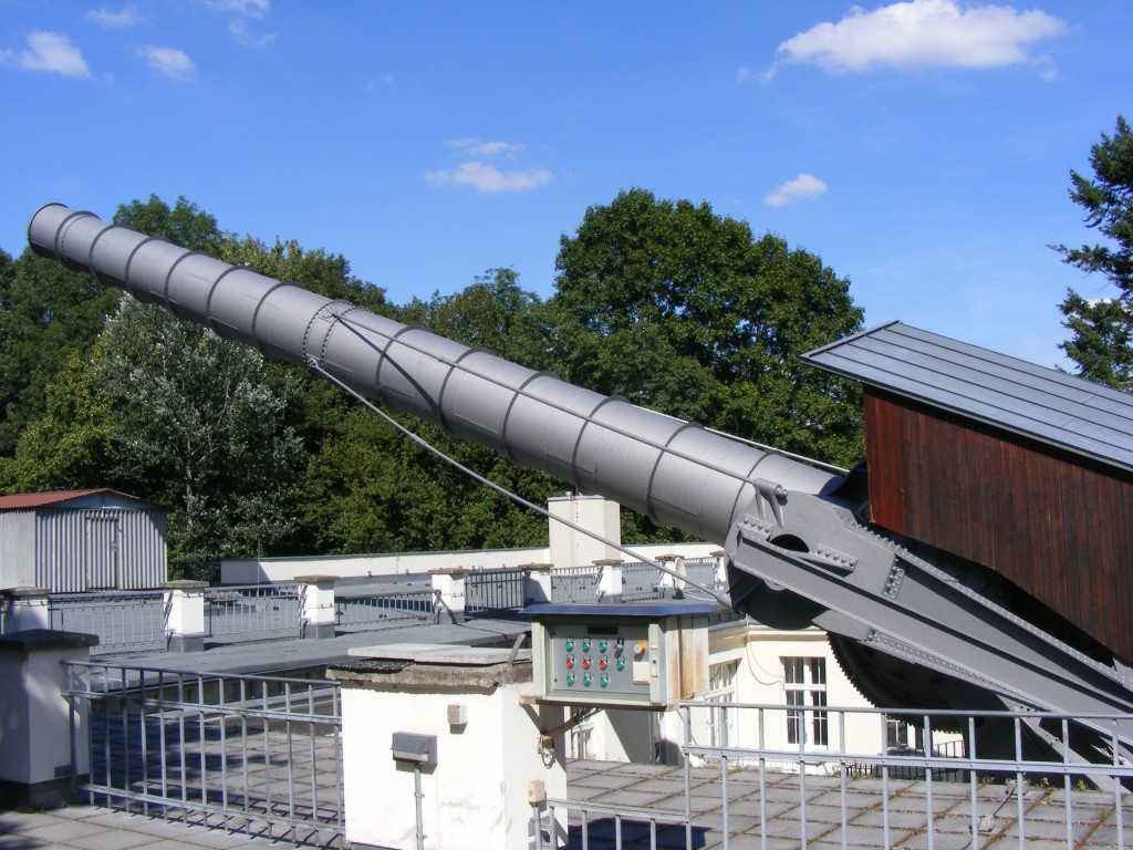 Das Riesenfernrohr auf dem Dach wurde durch die Bäume verdeckt. Auch wenn wir ein paar Minuten zu spät kamen, konnten wir aber noch an dem gesamten Vortrag als auch an den Beobachtungen im Sonnenphysikalischen Kabinett teilnehmen. Es war sehr interessant zu beobachten wie die Wolken live über die Sonne verlaufen. An dem Vortrag erfuhren wir, daß die Sonne aus Wasserstoff besteht und sie irgendwann in einigen millionen Jahren mal platzen wird.
