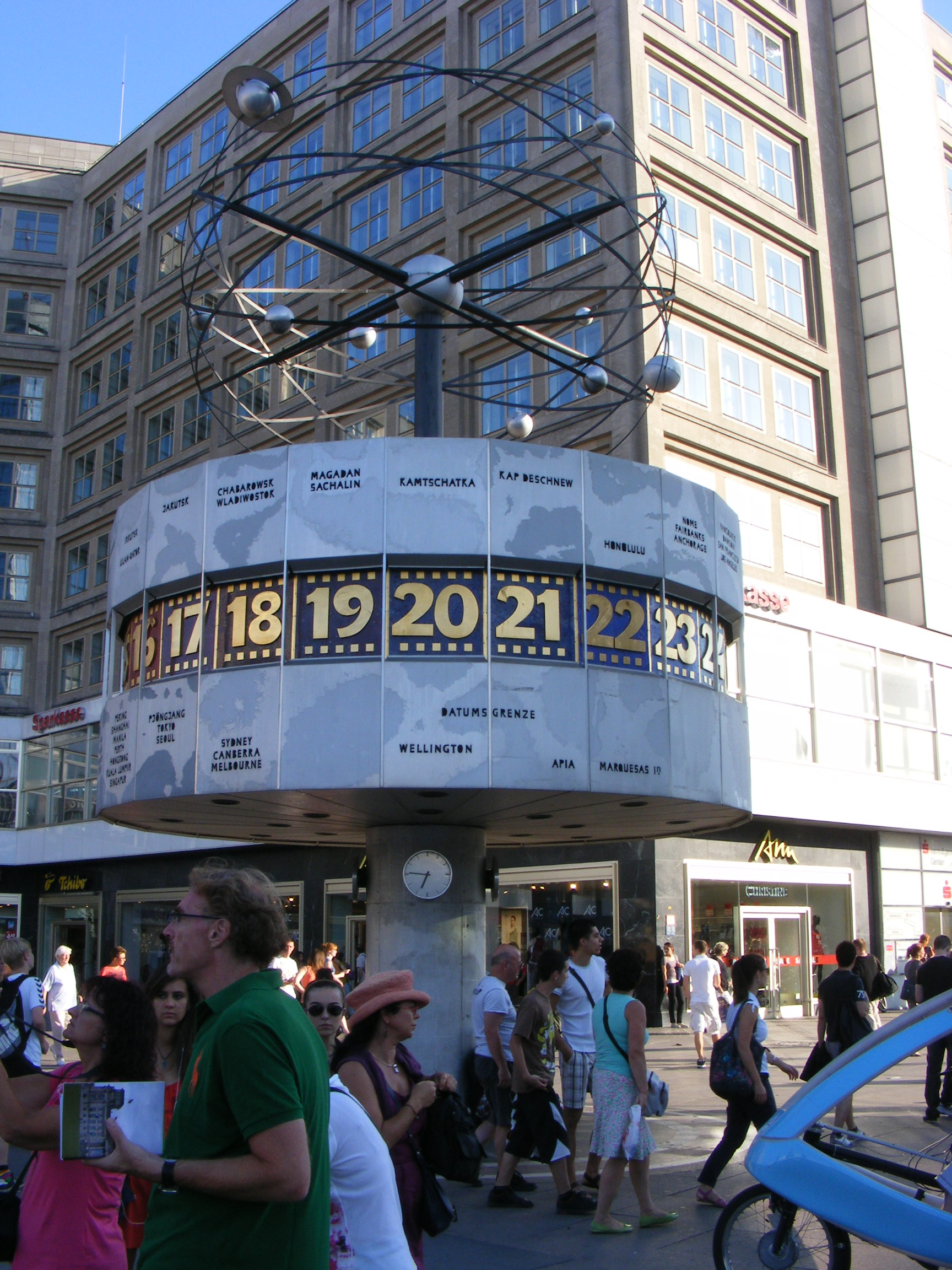 Da Thomas diese schnelle Auffahrt nicht verträgt, brach ich die Idee ab. 1.5 Std wollte ich jetzt nicht alleine warten. Ich rief ihn an und nach einem kurzen Gespräch setzte ich mich in die Rikscha und lies mich zur Weltzeituhr fahren, wo Thomas mich erwartete.