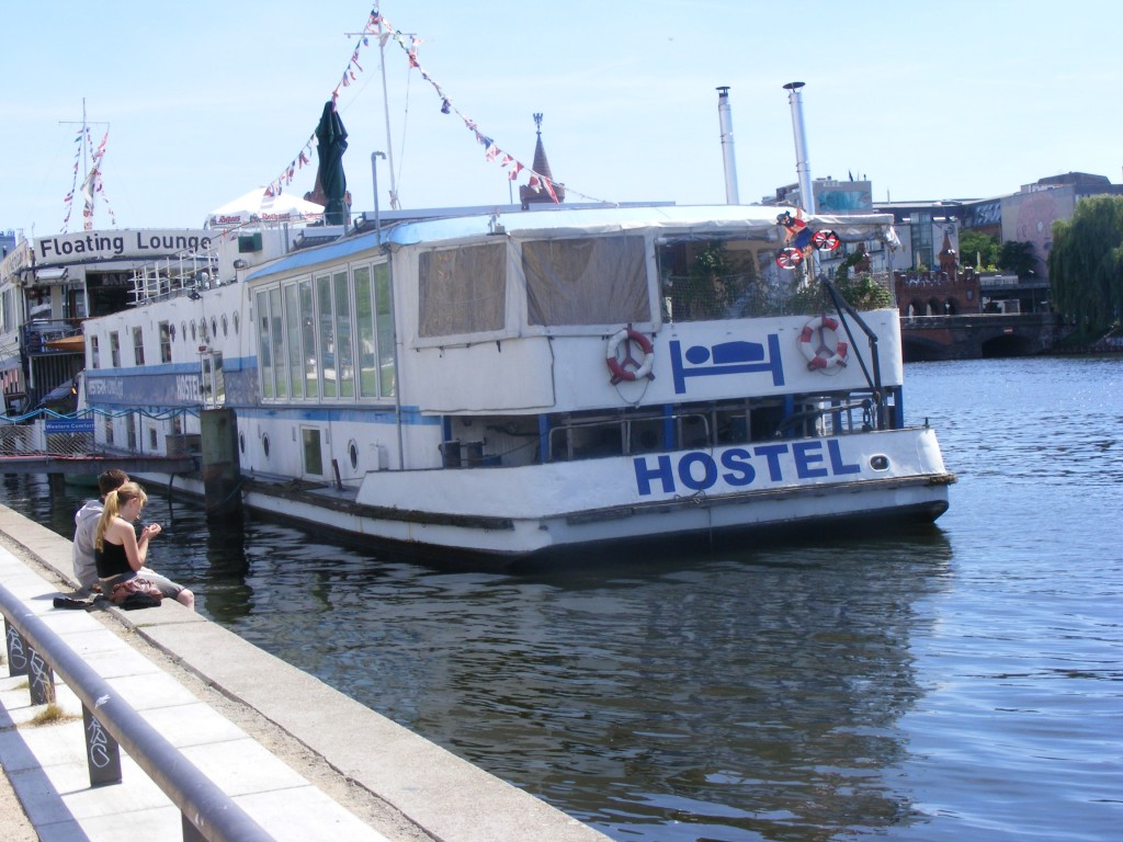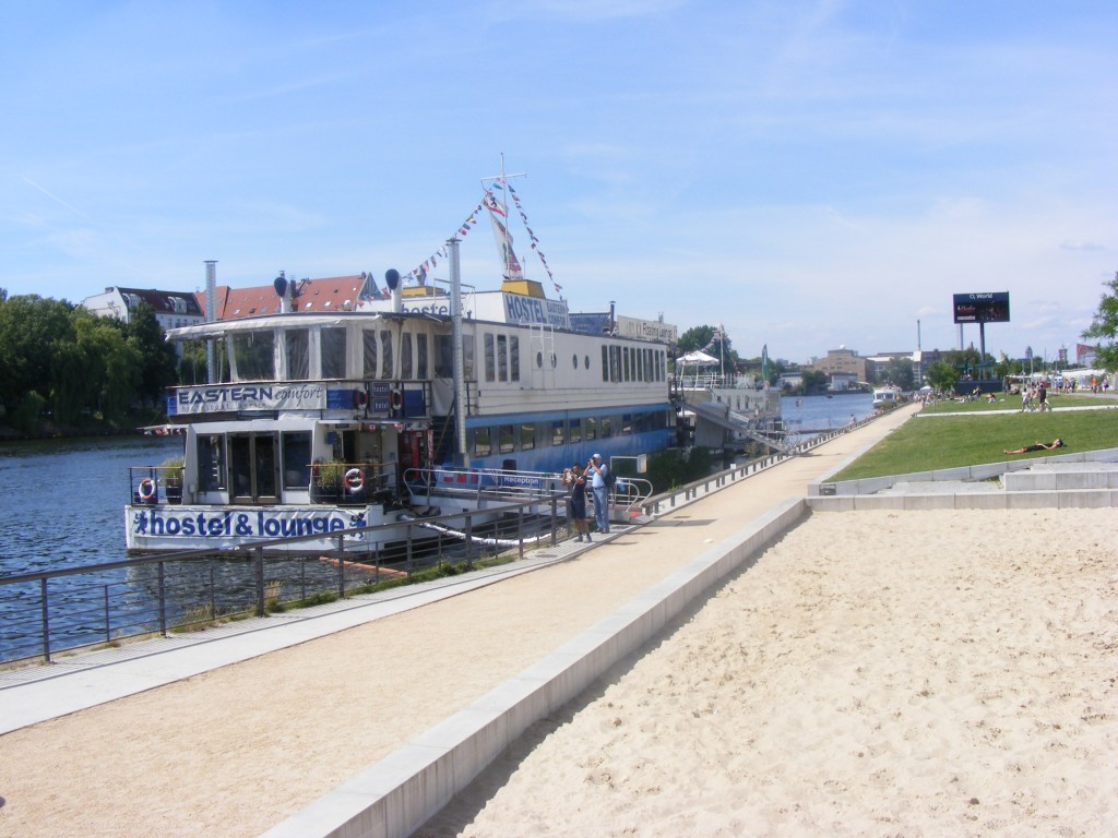 Kurz vor Ende der Mauer sah ich noch das Hostel-Boot. Es steht kurz vor Ende der Mauer in der Nähe der Oberbaumbrücke. Da ich neugierig war, ging ich rein um mir mal ein Bild der Zimmer zu machen. Die Idee finde ich richtig klasse. Geräumige Zimmer im Unterdeck und im Oberdeck ein Restaurant. Auch als Nicht-Hostel-Gast kann man im Restaurant trinken und essen.