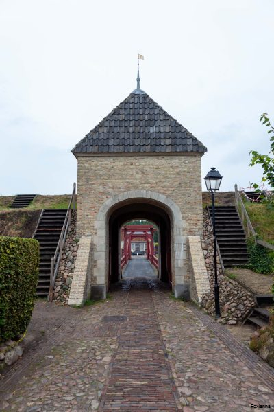 - Form: Ein perfekter Fünfstern, umgeben von Wassergräben, Bastionen und Wällen – ein Paradebeispiel niederländischer Festungsbaukunst.