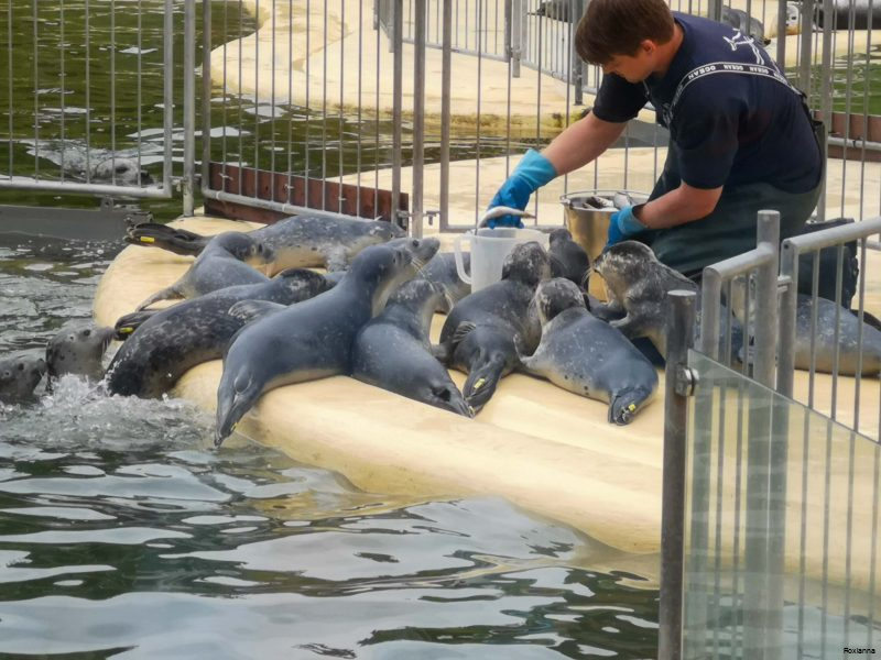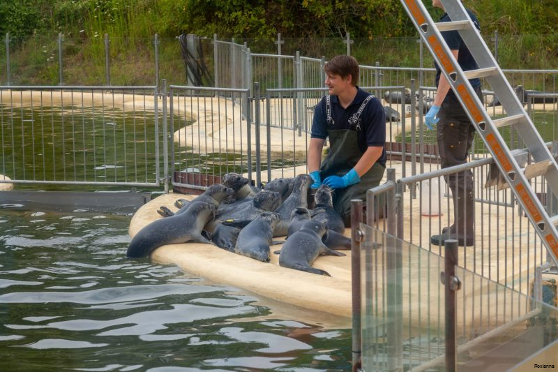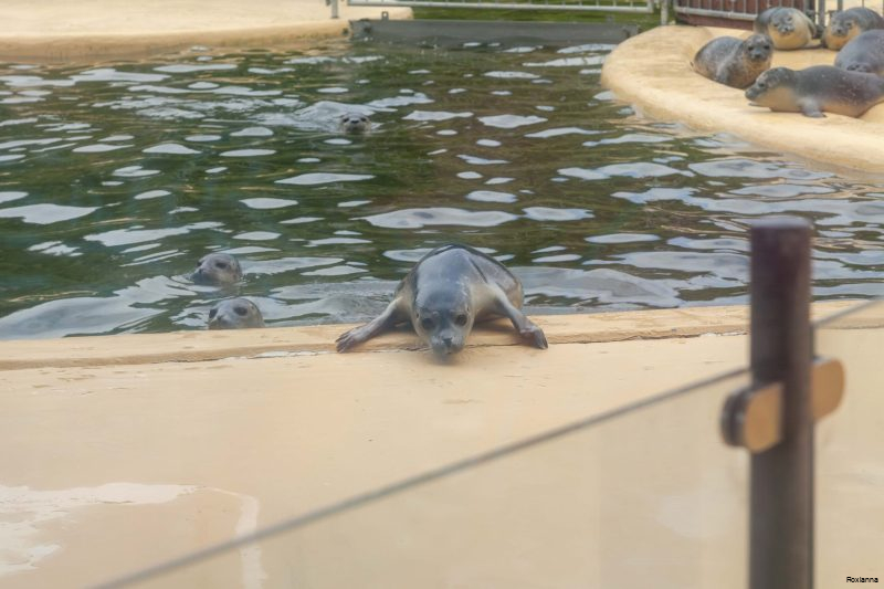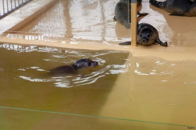 Sie können die jungen Robben durch große Glasscheiben beobachten, während sie in den Becken schwimmen oder gefüttert werden. Das Ziel ist immer die spätere Auswilderung der Tiere.
